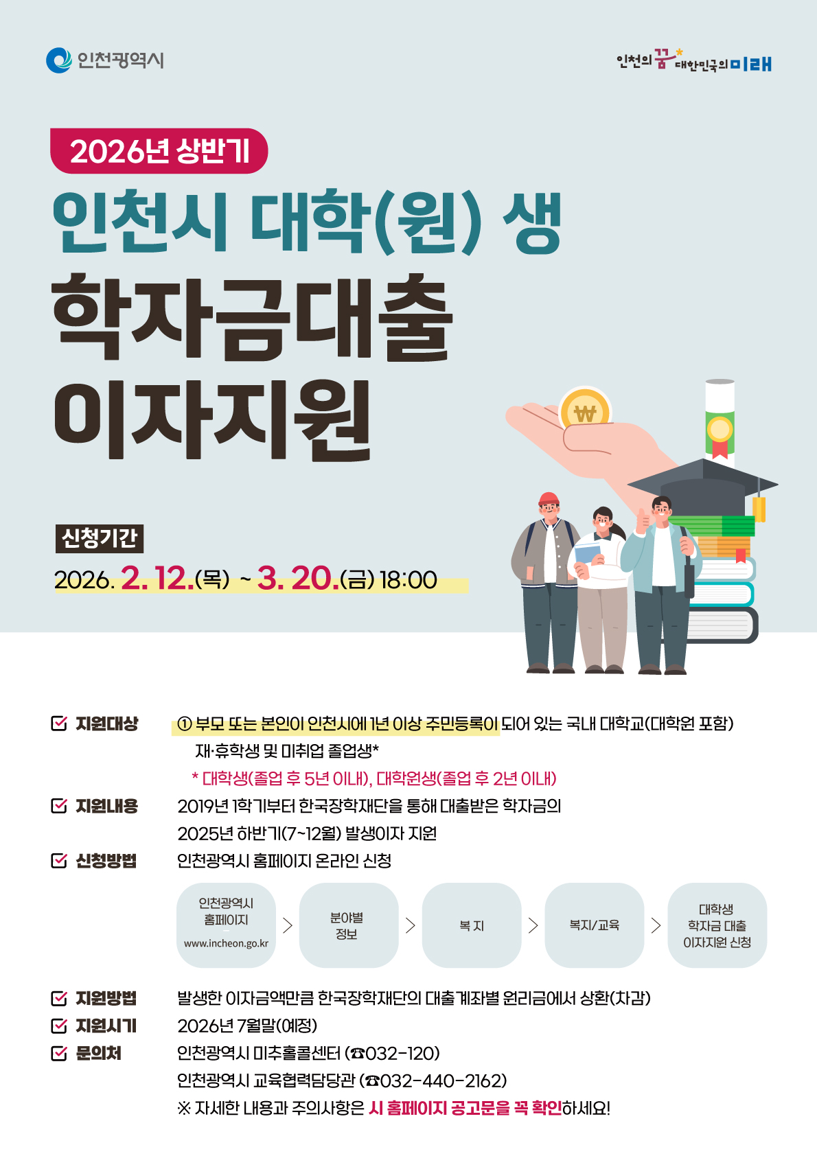 2026년 상반기 인천시 대학(원)생 학자금대출 이자 지원