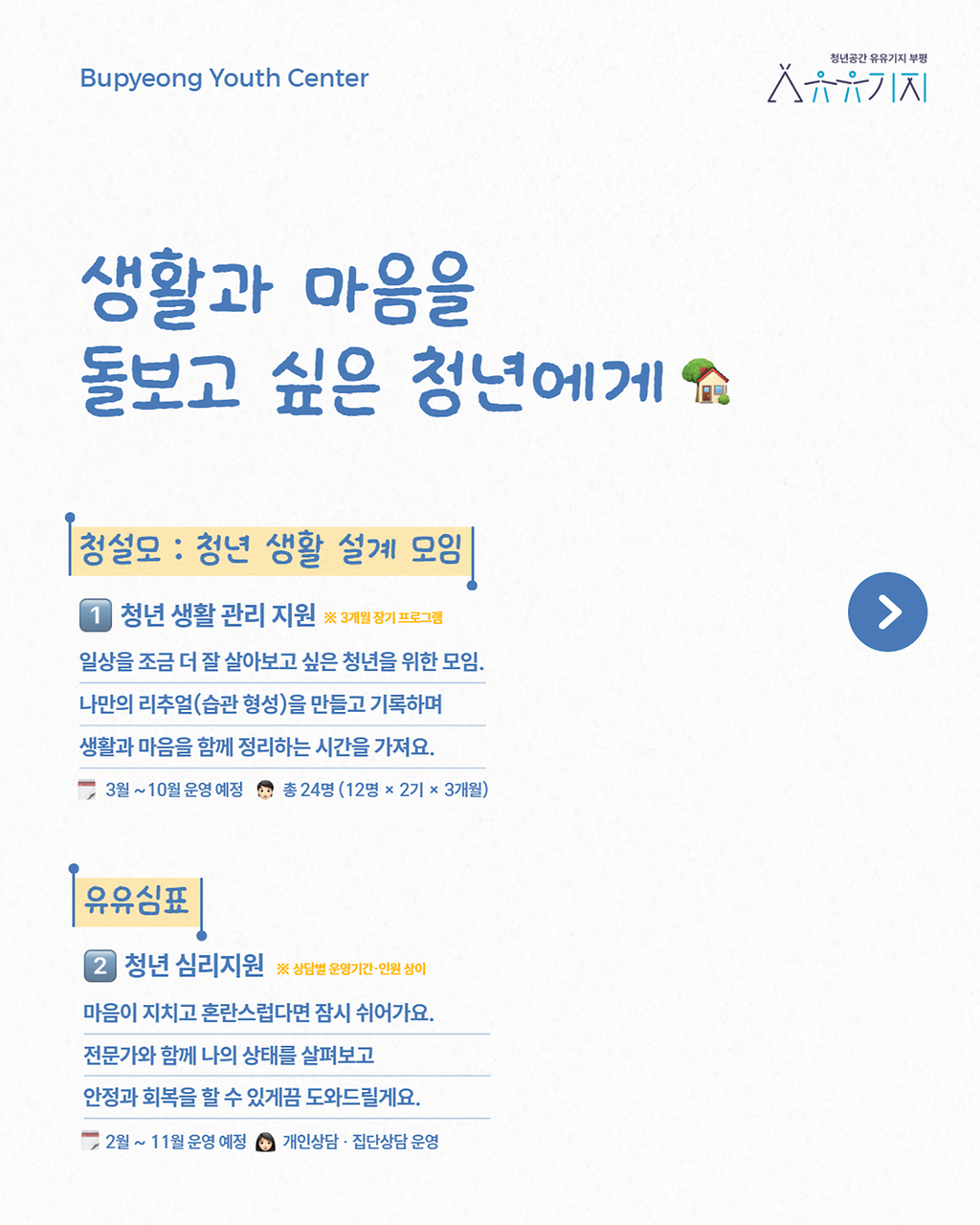 청년의 생활 전반을 아우르는 다양한 프로그램을 준비했어요!