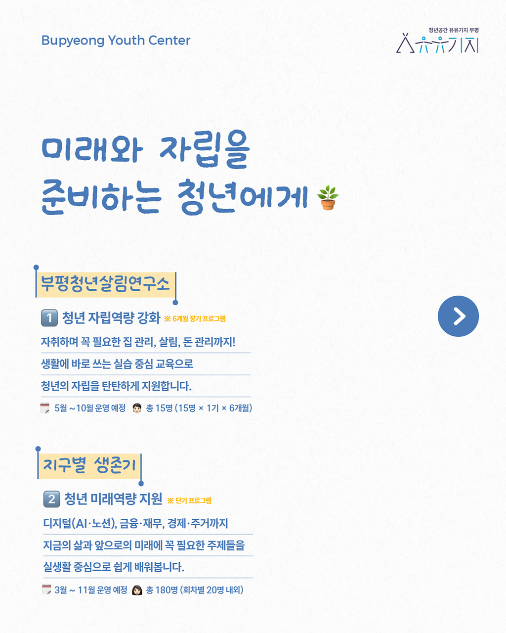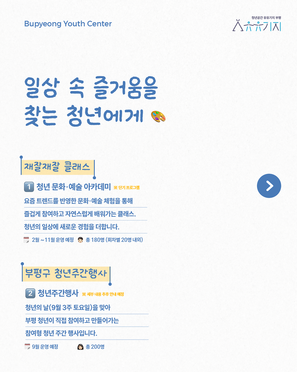 올해에도 유유기지 부평은 청년의 오늘과 내일을 연결하는 공간이 되고자 합니다.