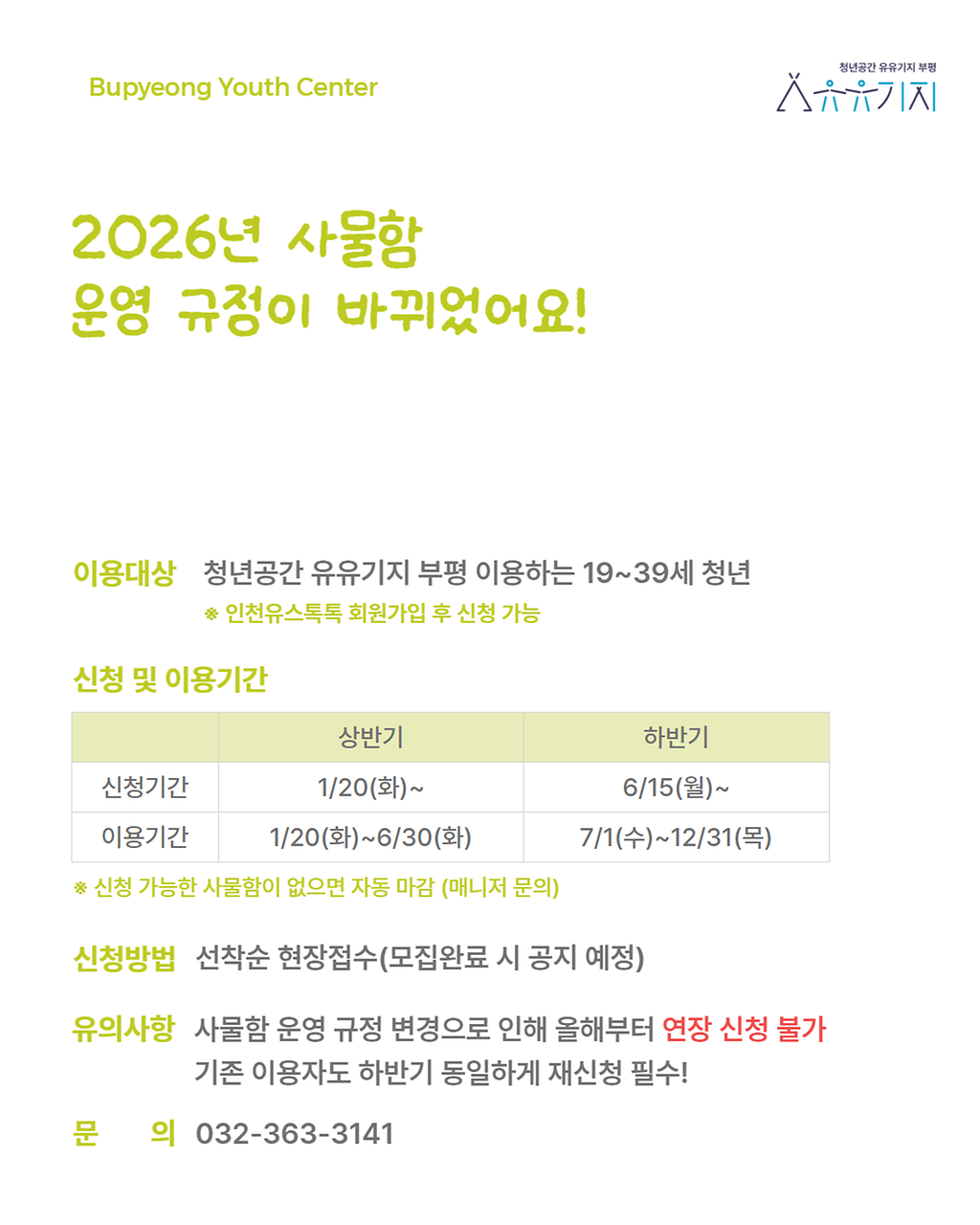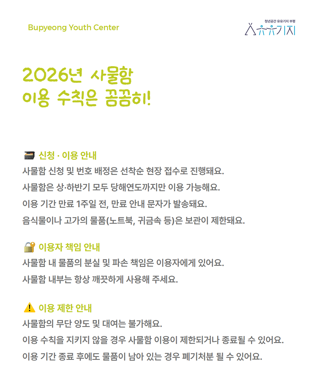 청년공간 유유기지 부평 2026 사물함 운영안내