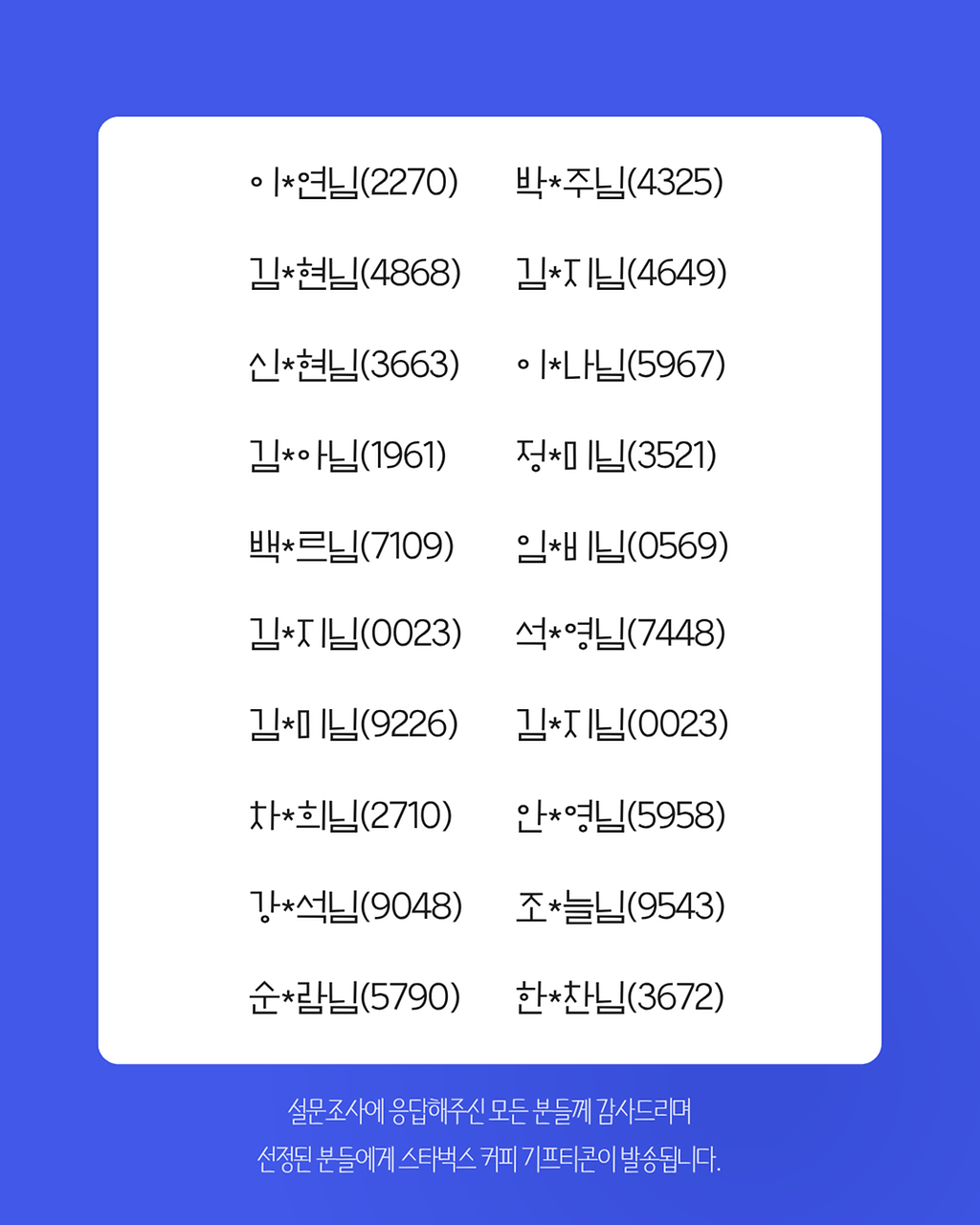 📢 설문조사 당첨자 발표 안내