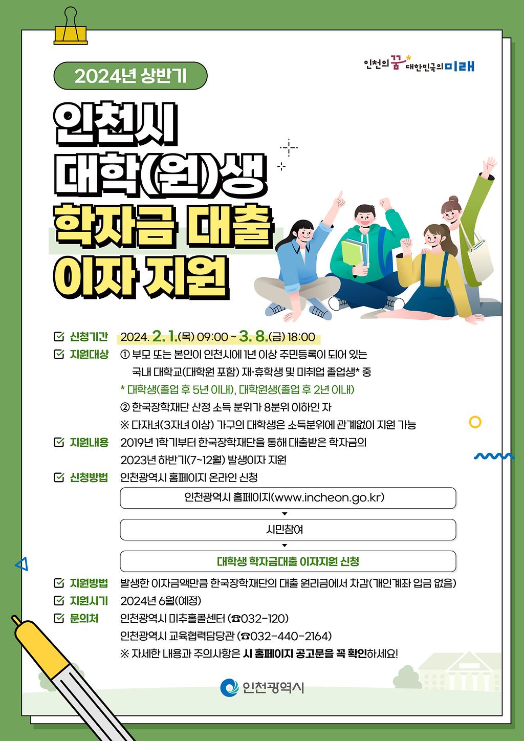2024년 상반기 인천시 대학(원)생 학자금 대출 이자 지원 안내