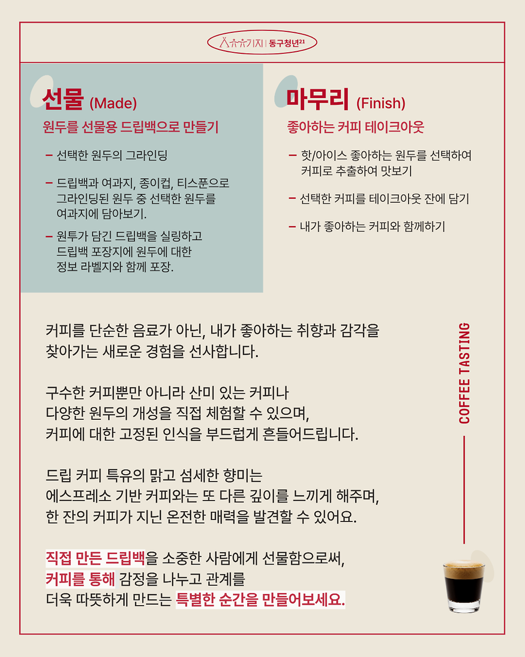 나에게 맞는 커피를 찾고 드립백으로 다른 사람과 나누어보세요!