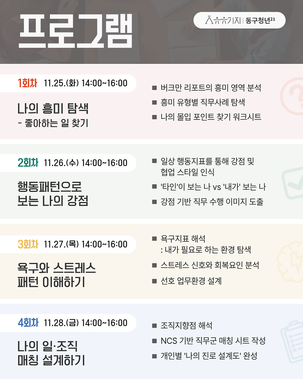 - 자신의 진로와 커리어에 고민이 있는 청년