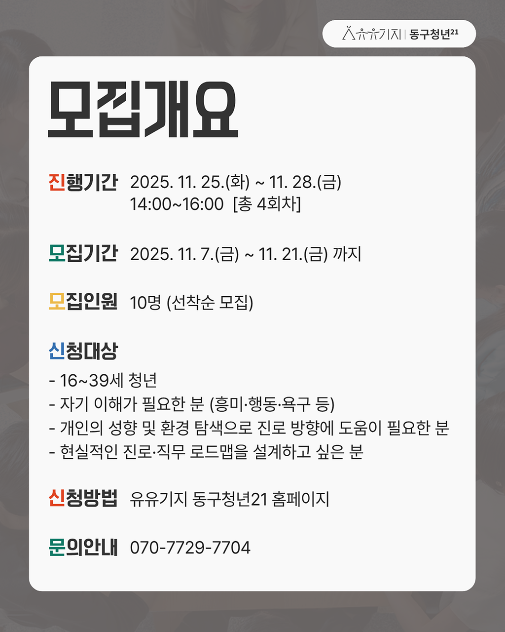 ○ 모집기간: 2025. 11. 21.(금)까지 선착순 모집