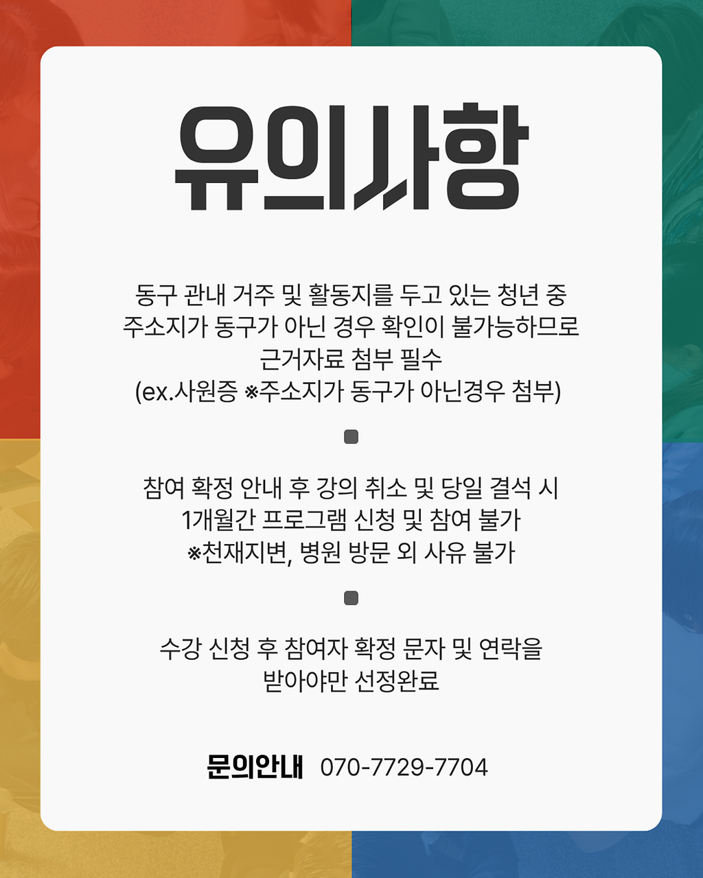 - 우선선발 기준: 동구에 거주 및 활동지를 둔 청년