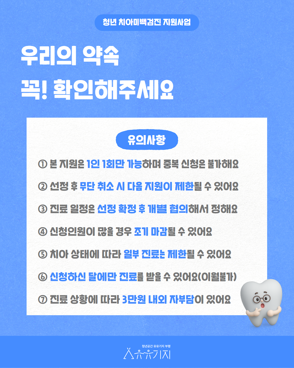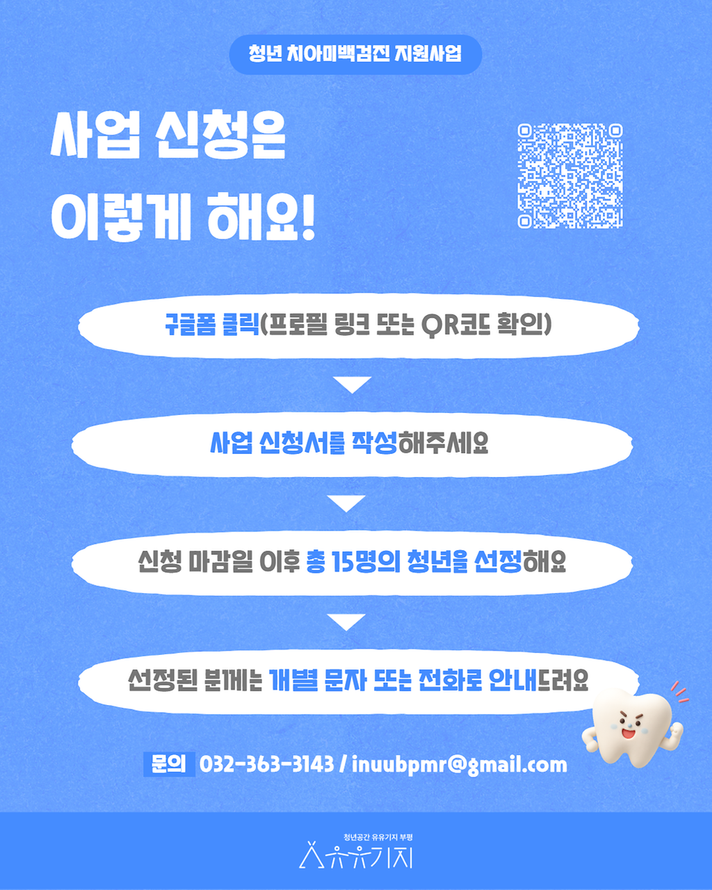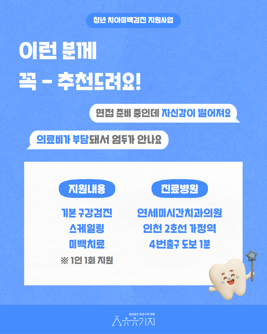 청년공간 유유기지 부평 X 공공의료복지네트워크가 청년을 위한 치아미백검진 지원 사업을 시작합니다!