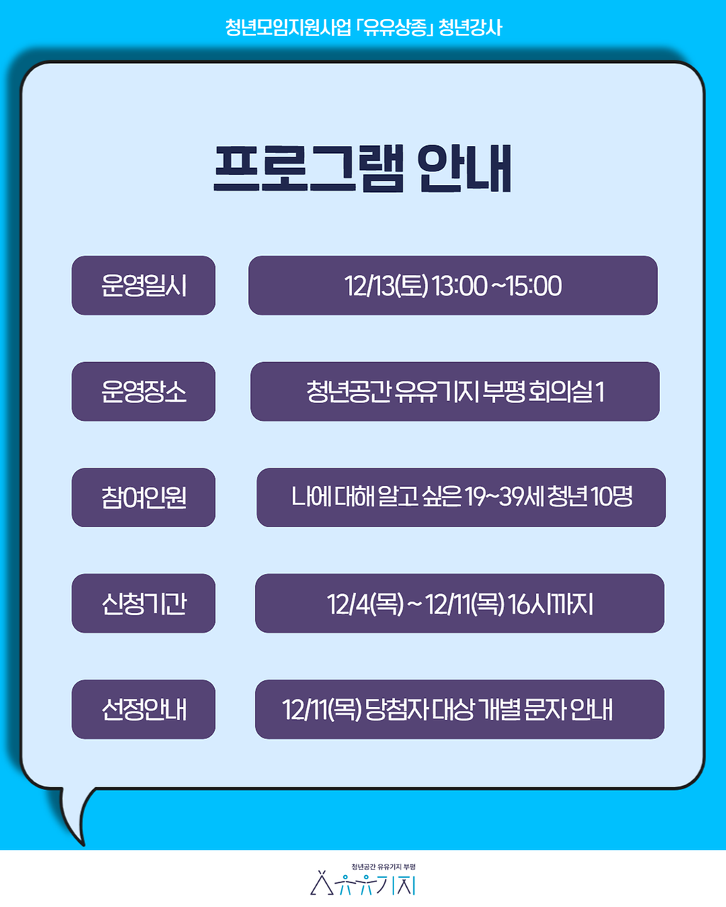 ✨ 운영장소 : 청년공간 유유기지 부평 유유스페이스