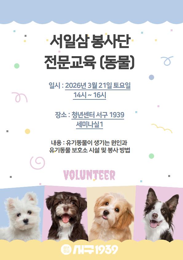 유기동물과 관련하여 전문 교육이 열린다고 합니다!