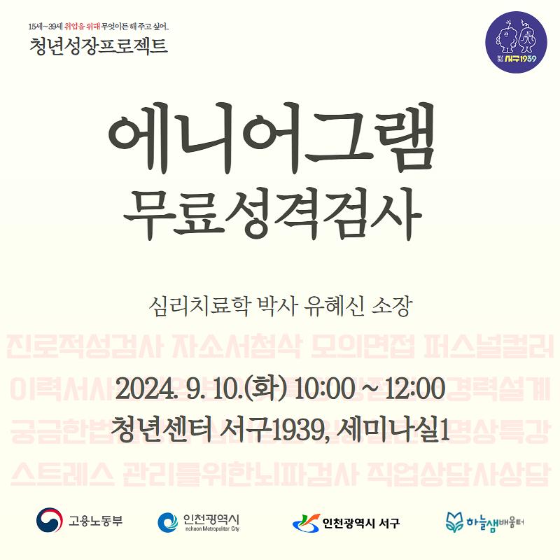 에니어그램을 통해 나를 알고 싶은 15세~39세 인천시민 20명 (선착순)