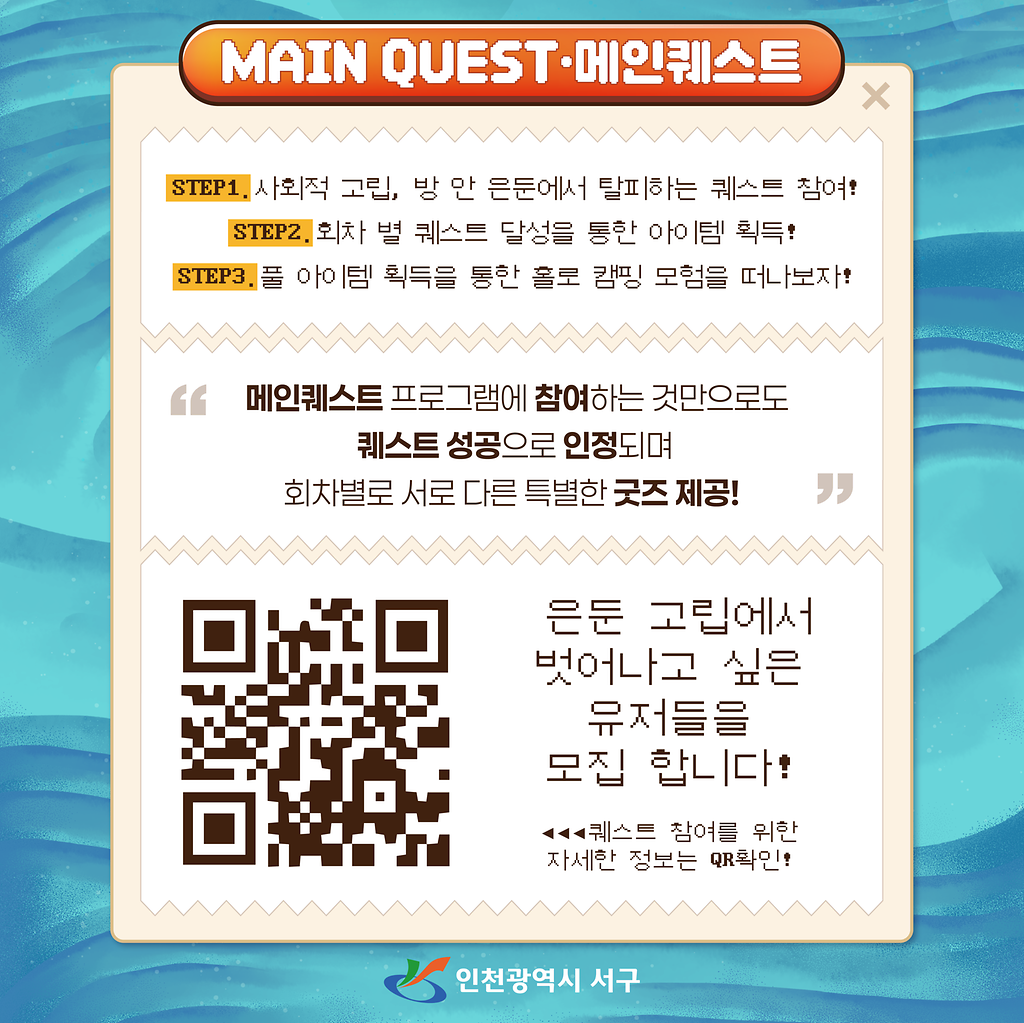 (상시 모집) 인천 서구 고립청년 사회복귀 프로젝트-나와, 우리동네 퀘스트 투어