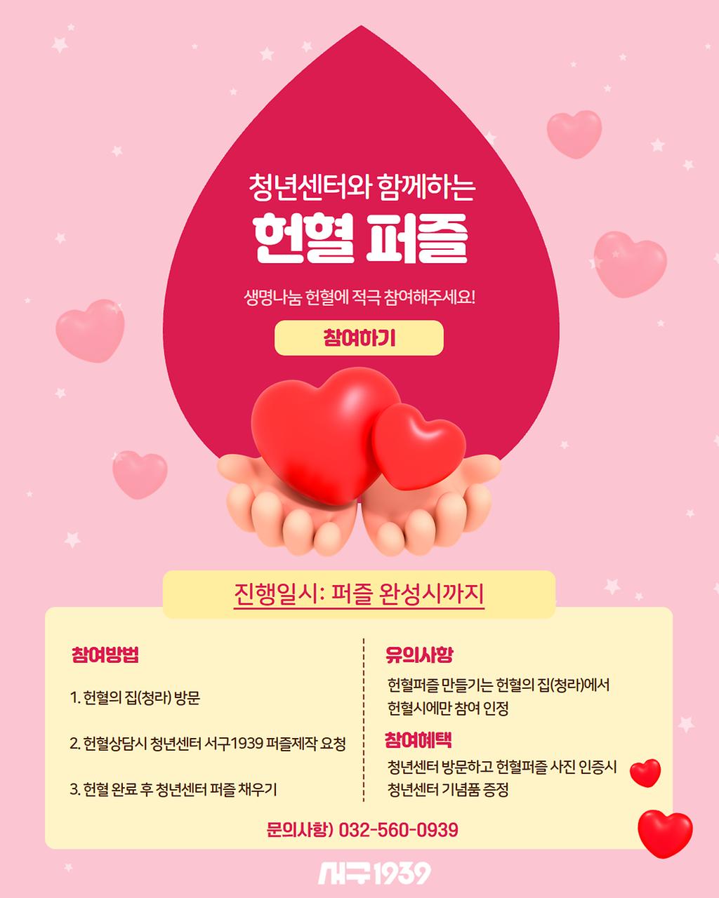 -헌혈상담시 청년센터 서구1939 퍼즐제작요청