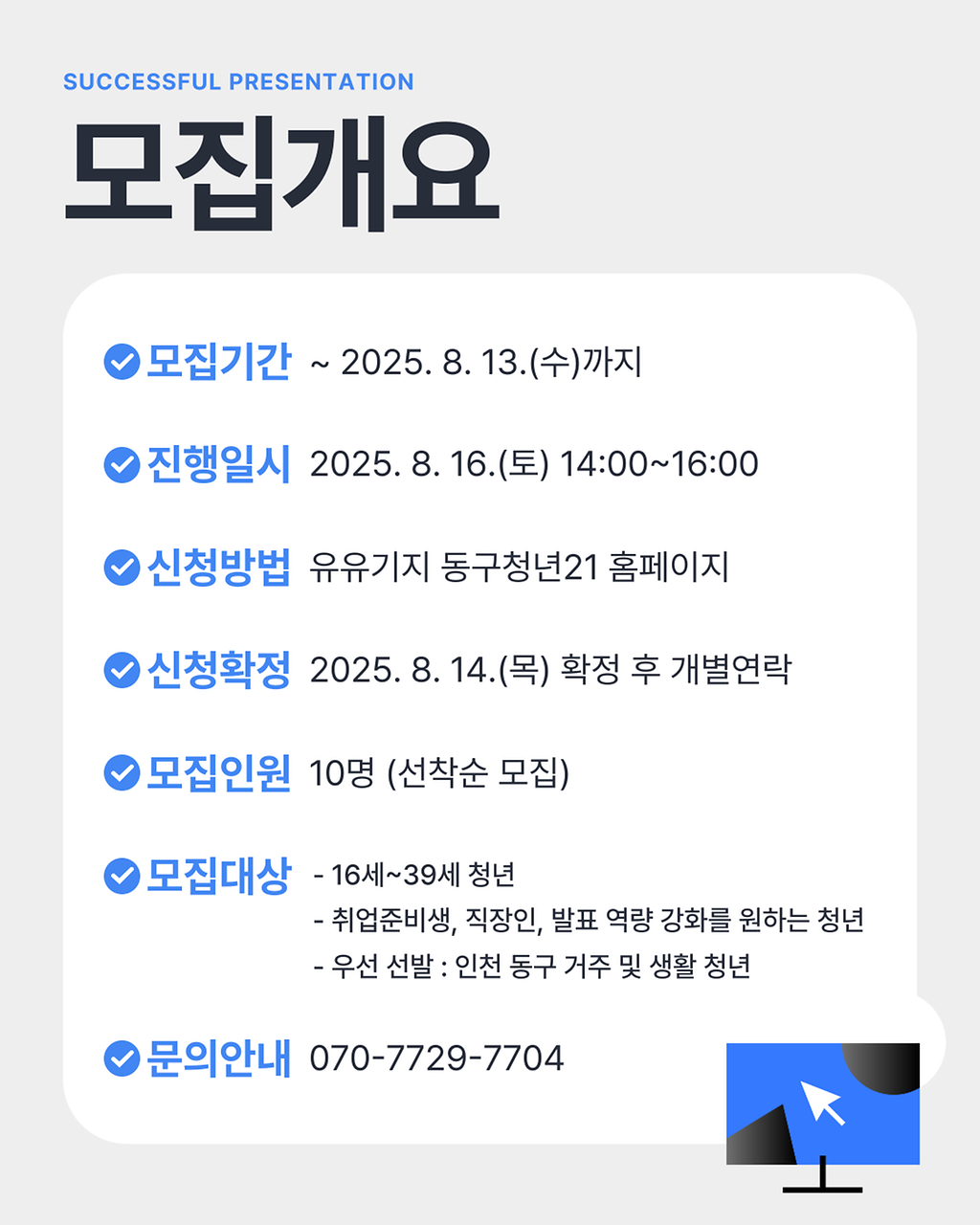 - 취업준비생, 직장인, 발표·프레젠테이션 역량을 강화하고자 하는 청년 누구나