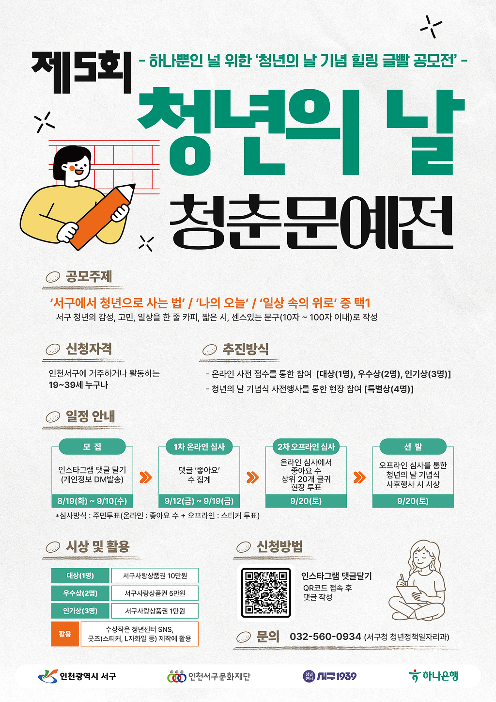글빨 좋은 청년들의 많은 참여부탁드립니다.