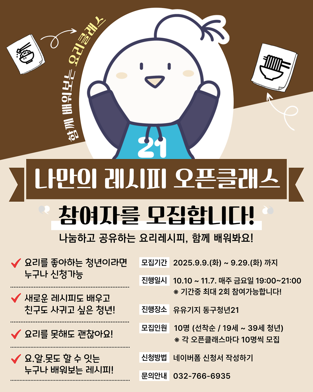 🍳 소셜다이닝 ‘나만의 레시피 오픈클래스’ 참여자 모집