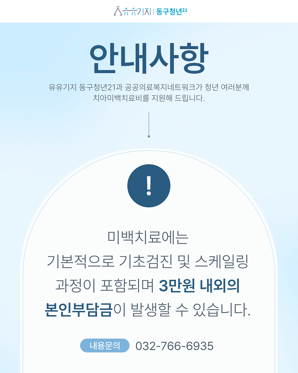 청년여러분께 치아미백치료비를 지원해드립니다.