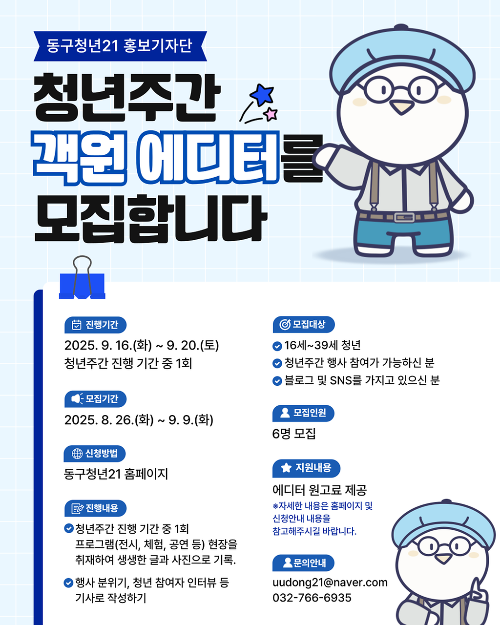 [유유기지 동구청년21 기자단] 유자단 청년주간 객원에디터 모집