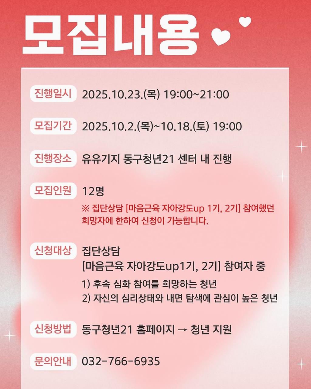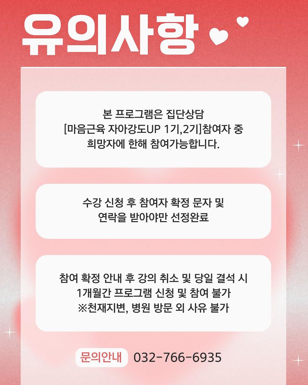 집단상담 마음근육 자아강도UP 1, 2기 참여자만 신청 가능합니다.