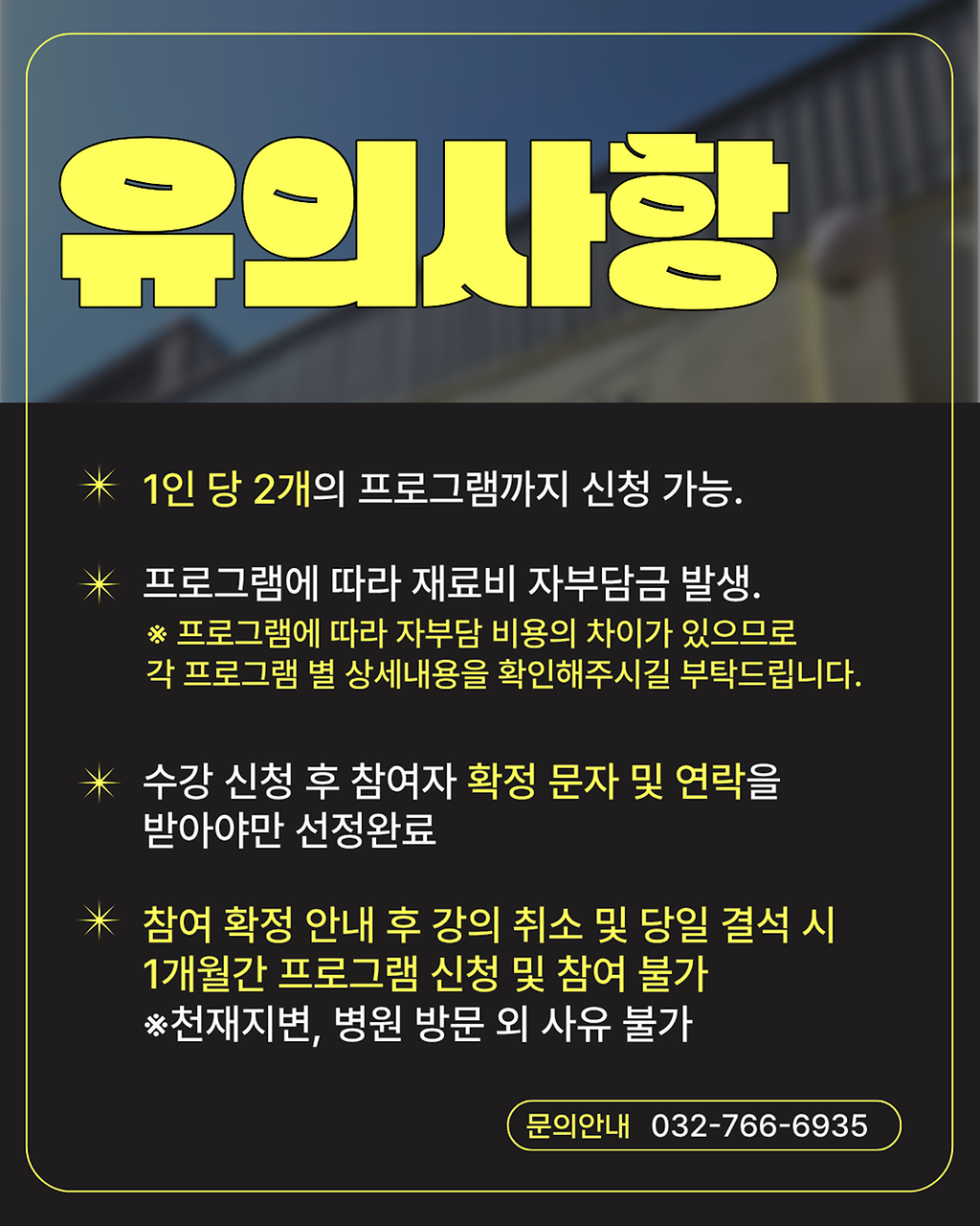 프로그램 별 자부담 비용 다르므로 상세내용 확인 필수