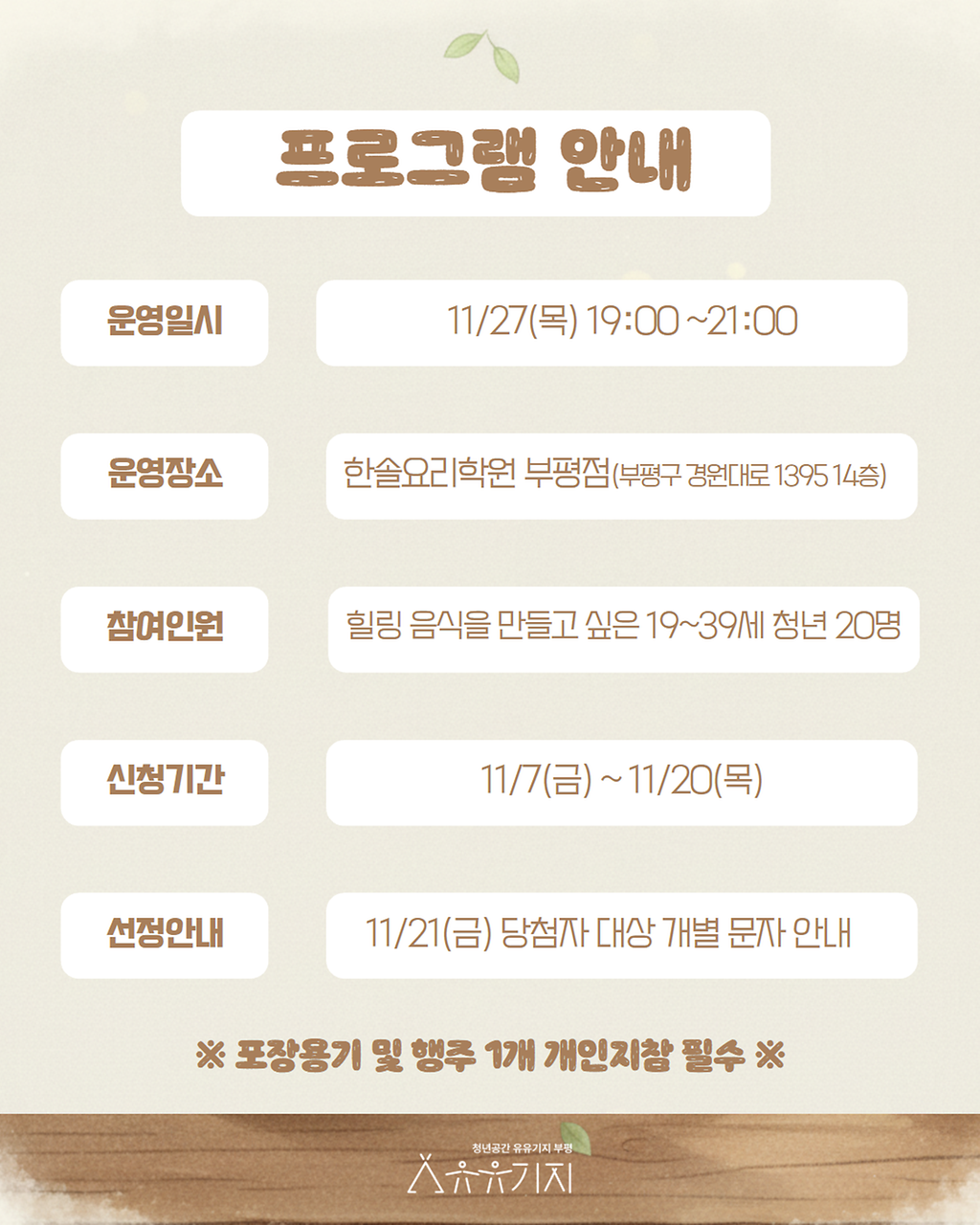 ✨ 운영장소 : 청년공간 유유기지 부평 유유스페이스