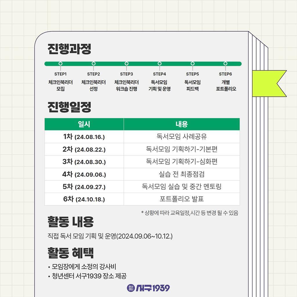독서모임을 만들어보고 싶은 서구에 거주하거나 활동하는 청년(19~39세)