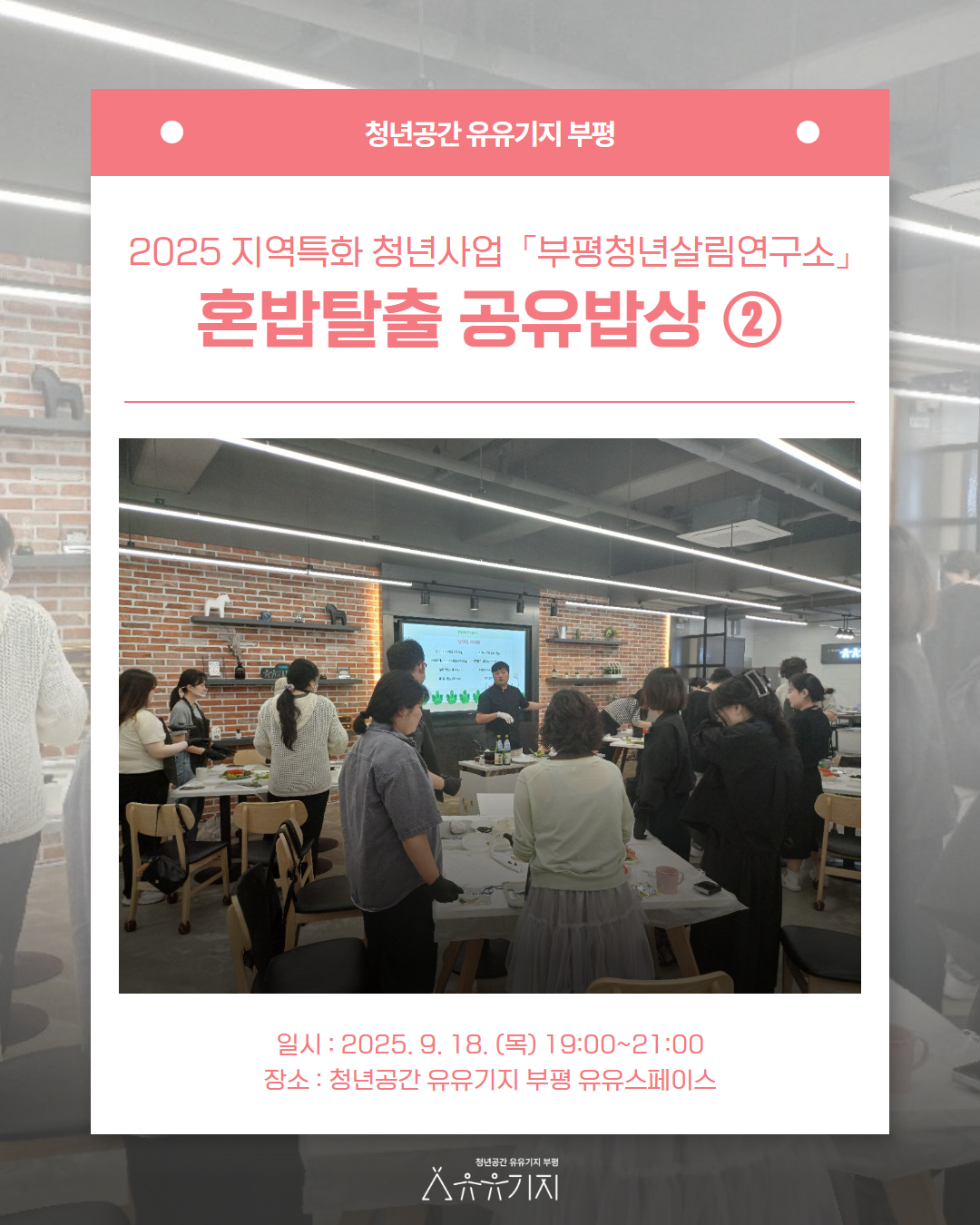 9월 18일, 2025 지역특화 청년사업 「부평 청년살림연구소」에서 ‘혼밥탈출 공유밥상 ②’ 프로그램이 진행되었습니다.