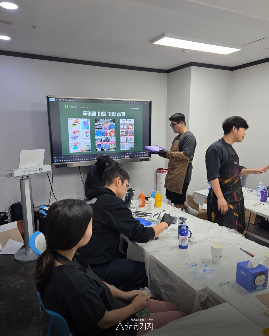 9월 22일 월요일, 청년주간 프로그램으로 시각예술 모임 ‘그래, 이색이야’와 함께하는 <푸어링 아트> 프로그램이 진행되었습니다! 🎨✨