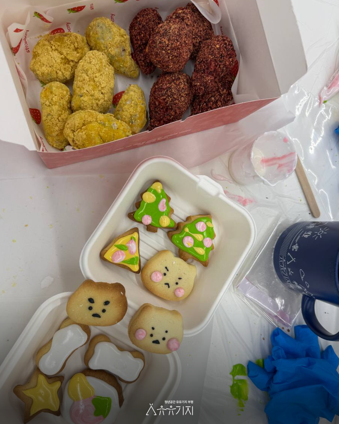 이번 프로그램은 반려견의 영양 정보를 배우고 직접 건강한 치킨 간식을 만들어보는 시간이었습니다. 참가자들은 정성을 가득 담아 간식을 만들고, 보호자를 위한 달콤한 아이싱 쿠키까지 체험하며 모두가 함께 웃음 짓는 즐거운 순간을 가졌습니다. 👨🍳🍪