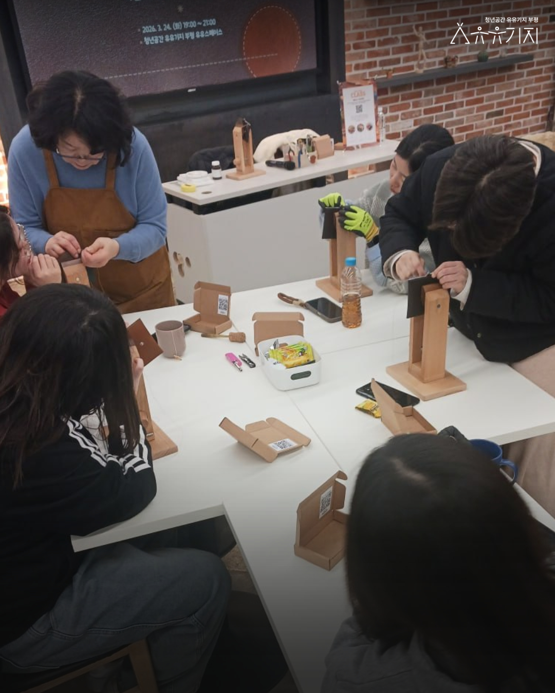 이번 프로그램에서는 청년분들이 직접 고른 가죽으로 스냅버튼 카드지갑을 만드는 시간을 가졌는데요. 한 땀 한 땀 바느질에 집중하며 몰입하는 과정의 즐거움을 경험했습니다.