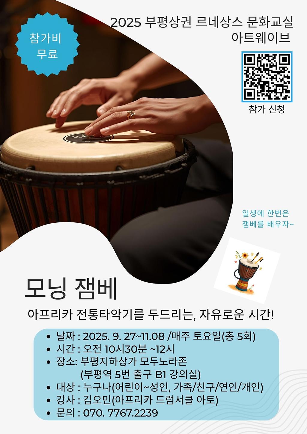 부평문화교실에서 진행하는 '토요일 모닝잼베' 입니다.