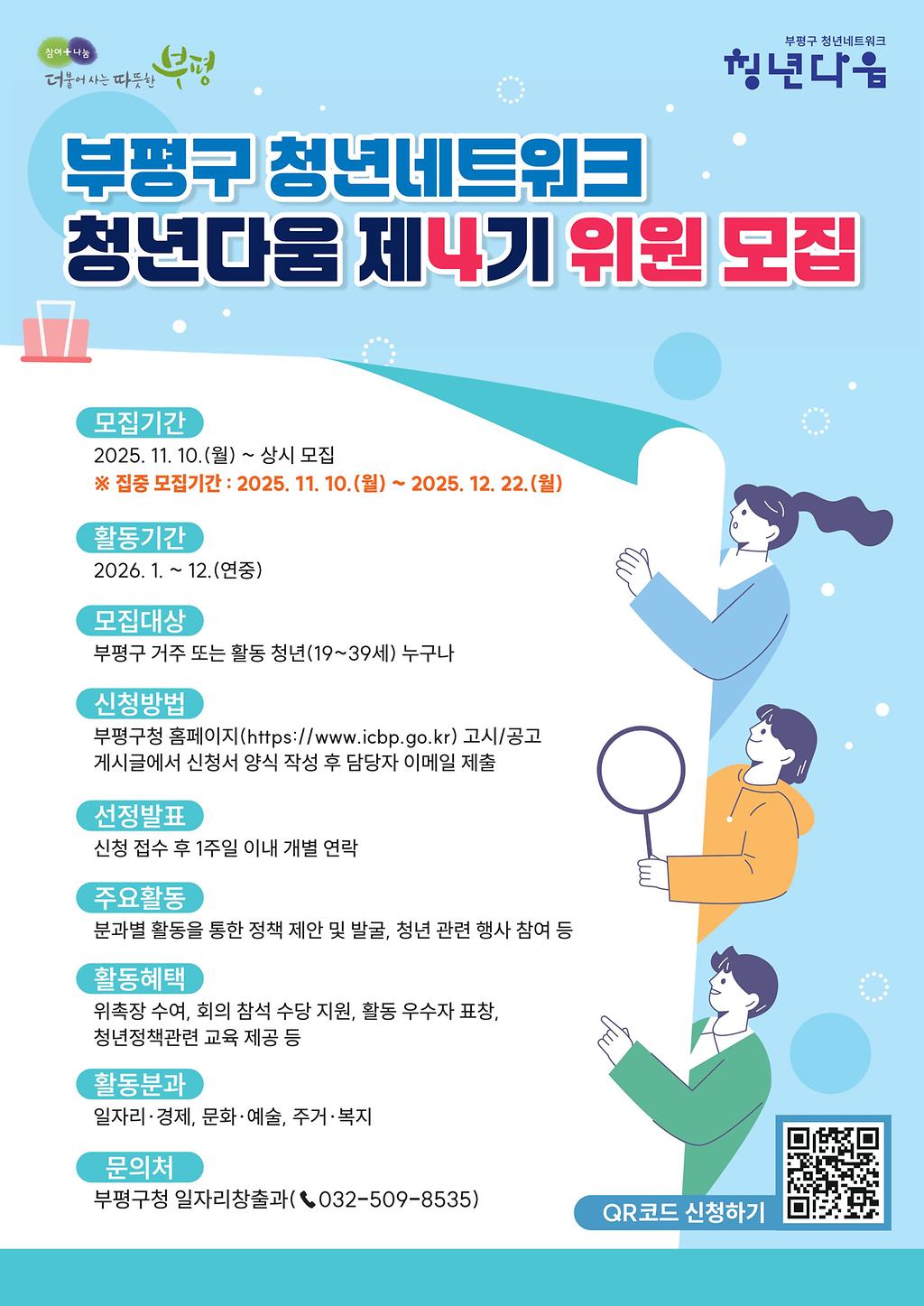 부평구청에서 진행하는 부평구 청년네트워크 청년다움 제4기 위원 모집' 입니다.