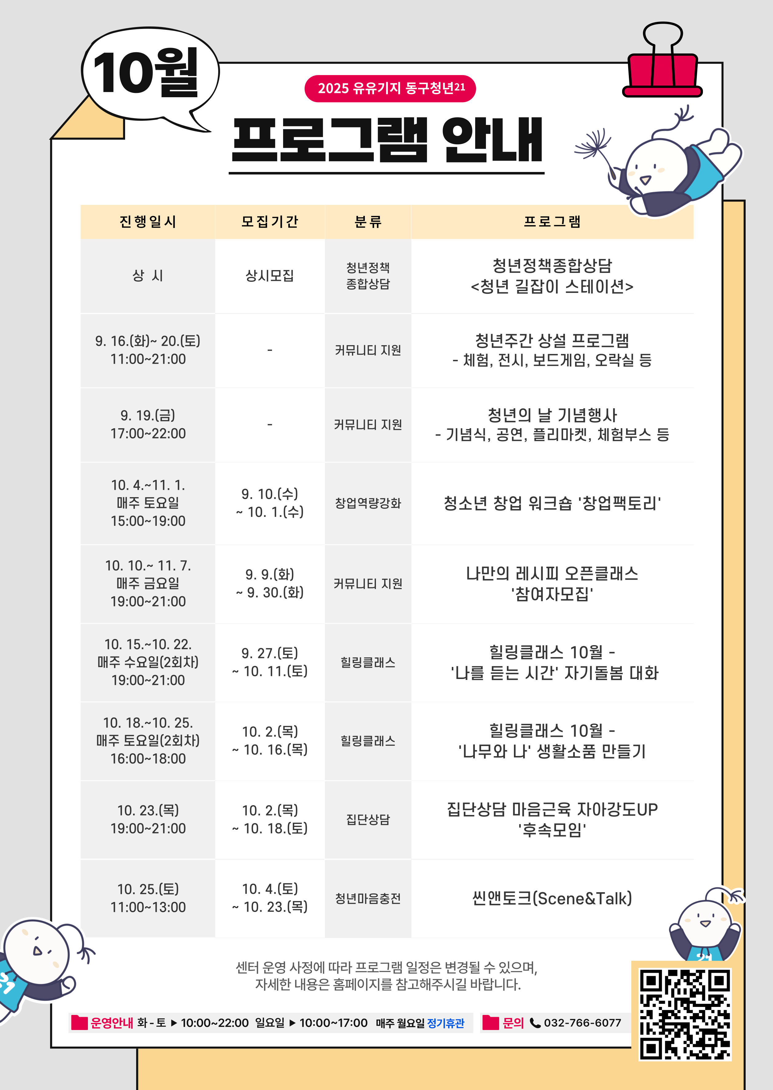유유기지 동구청년21 10월 프로그램 안내