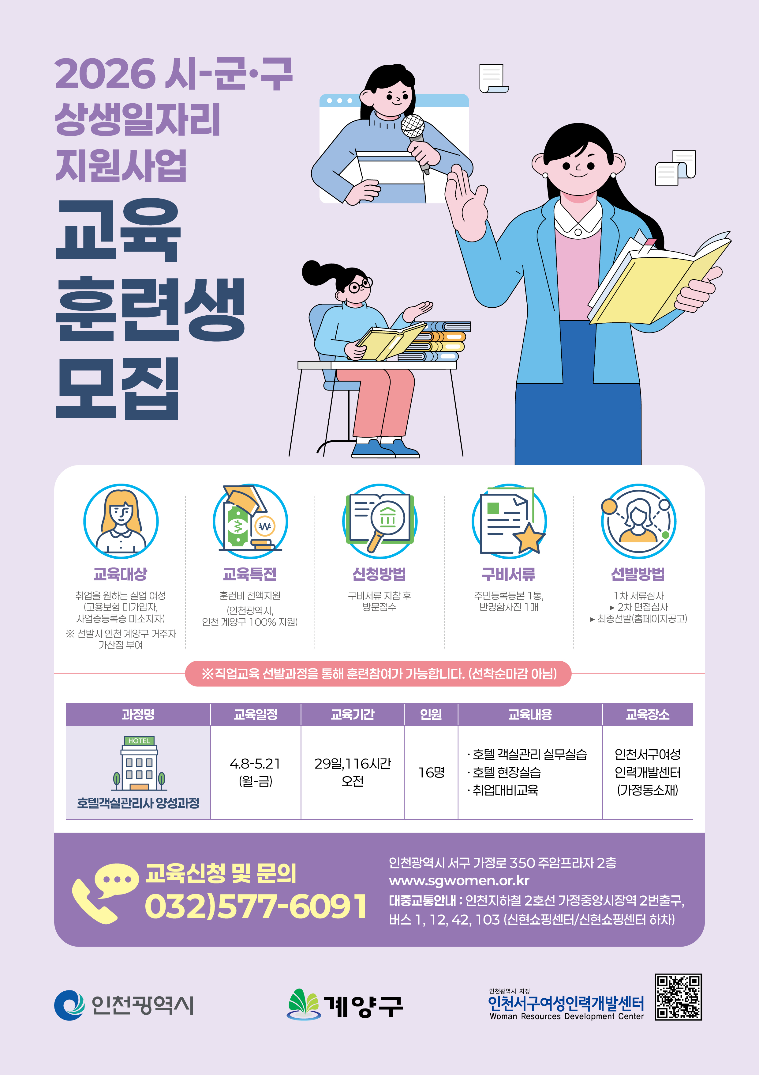 📞 문의 : 인천서구여성인력개발센터 교육훈련팀 [☎032-577-6091(내선 1번)]