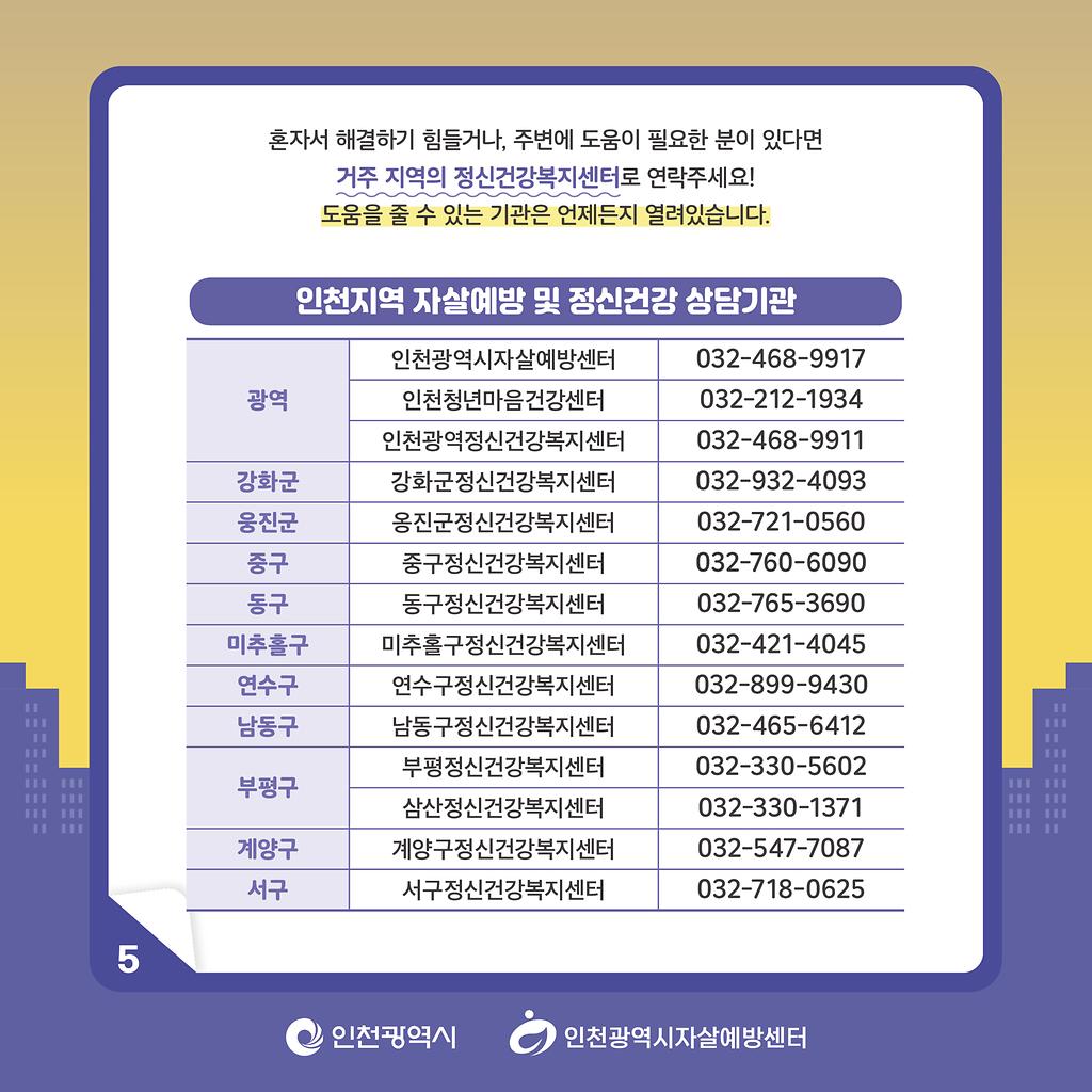 [인천광역시자살예방센터] 3분기 청년 자살예방 카드뉴스