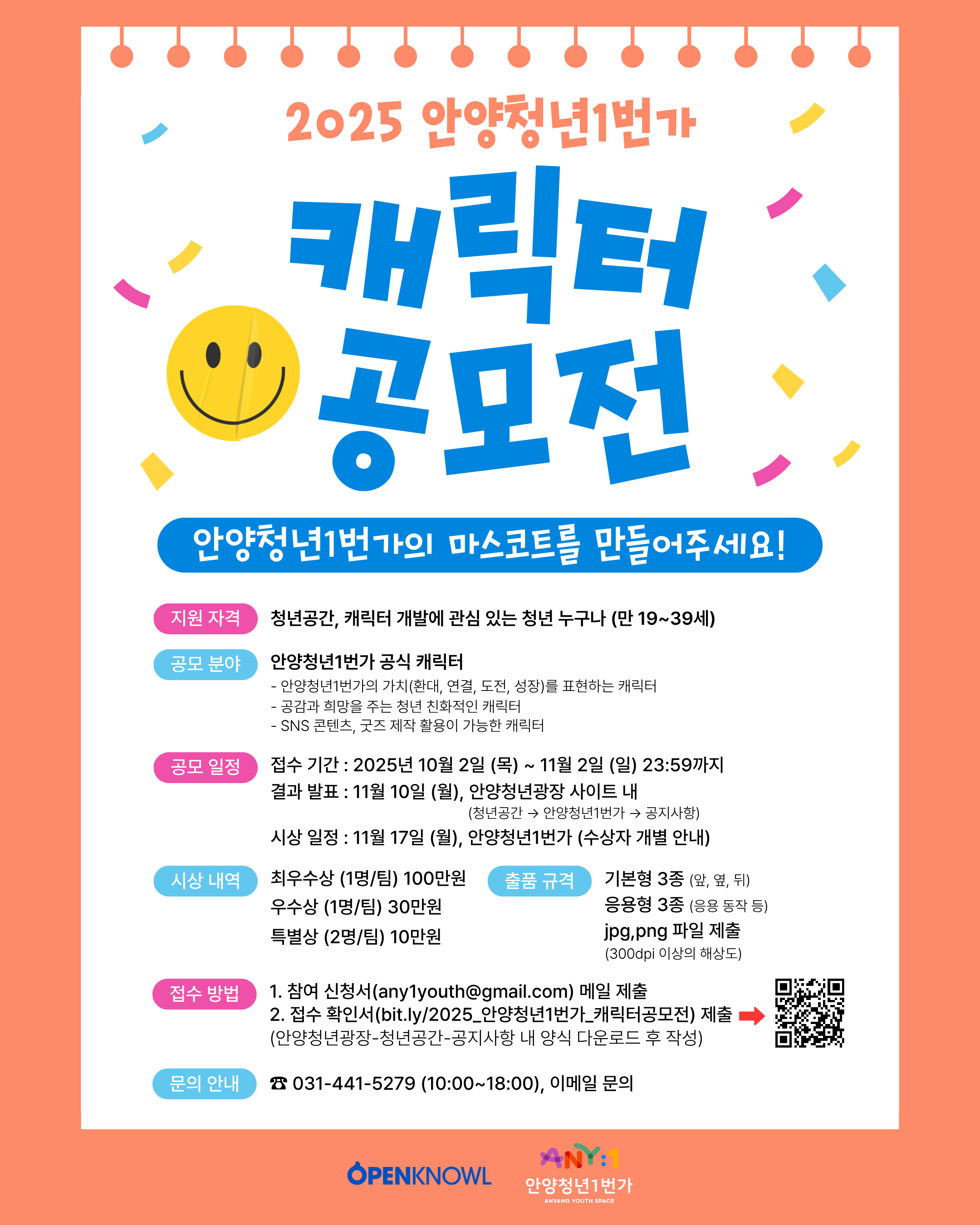 ※ 모든 파일: 알집으로 압축, '2025_안양청년1번가_캐릭터 공모전_대표자명'으로 이메일 제출