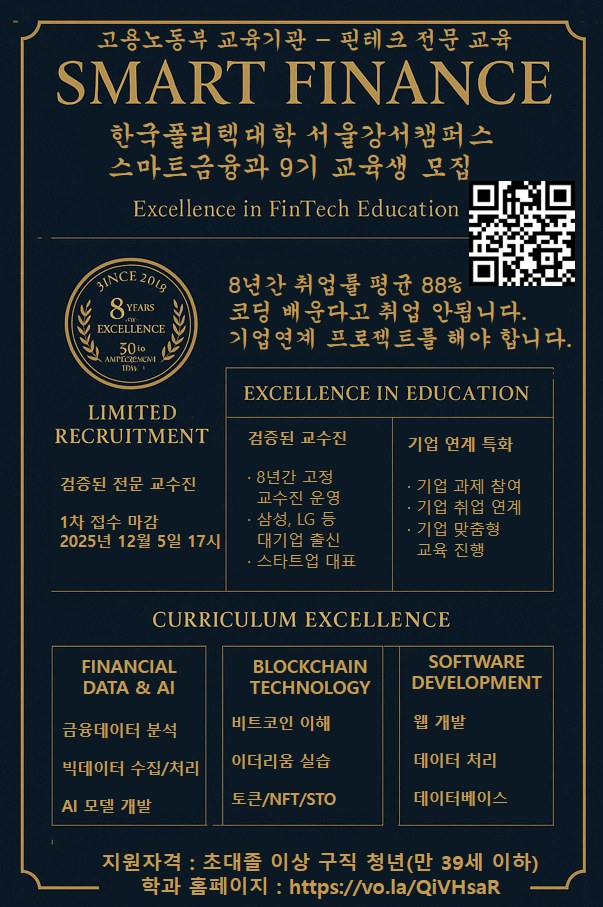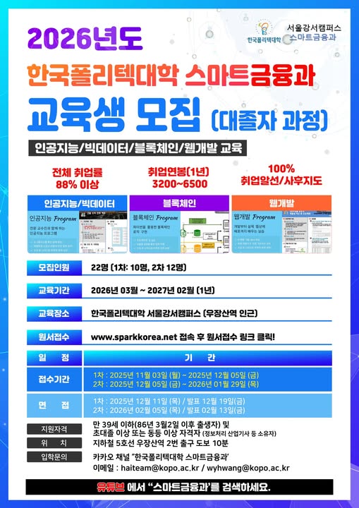 [대졸자 IT취업과정] 스마트금융과 2026년도 교육생 모집중