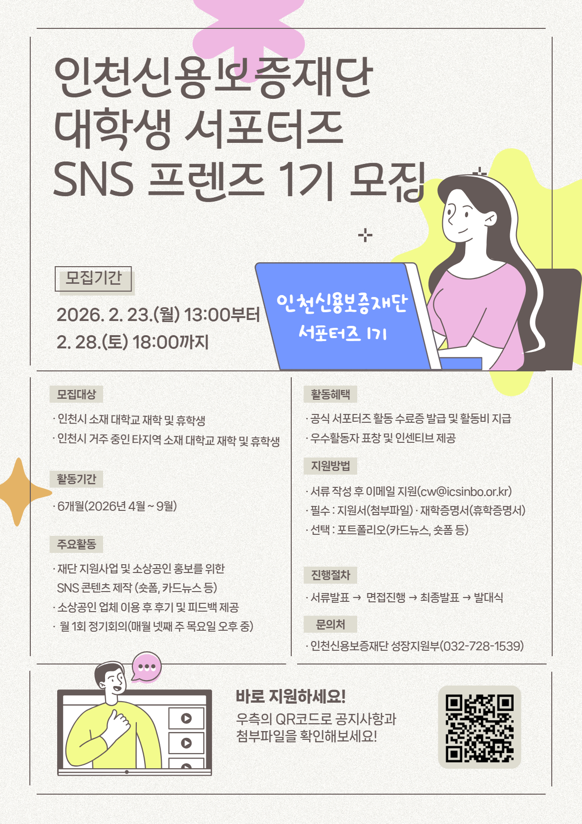 [인천신용보증재단] 서포터즈 SNS 프렌즈 1기모집 안내