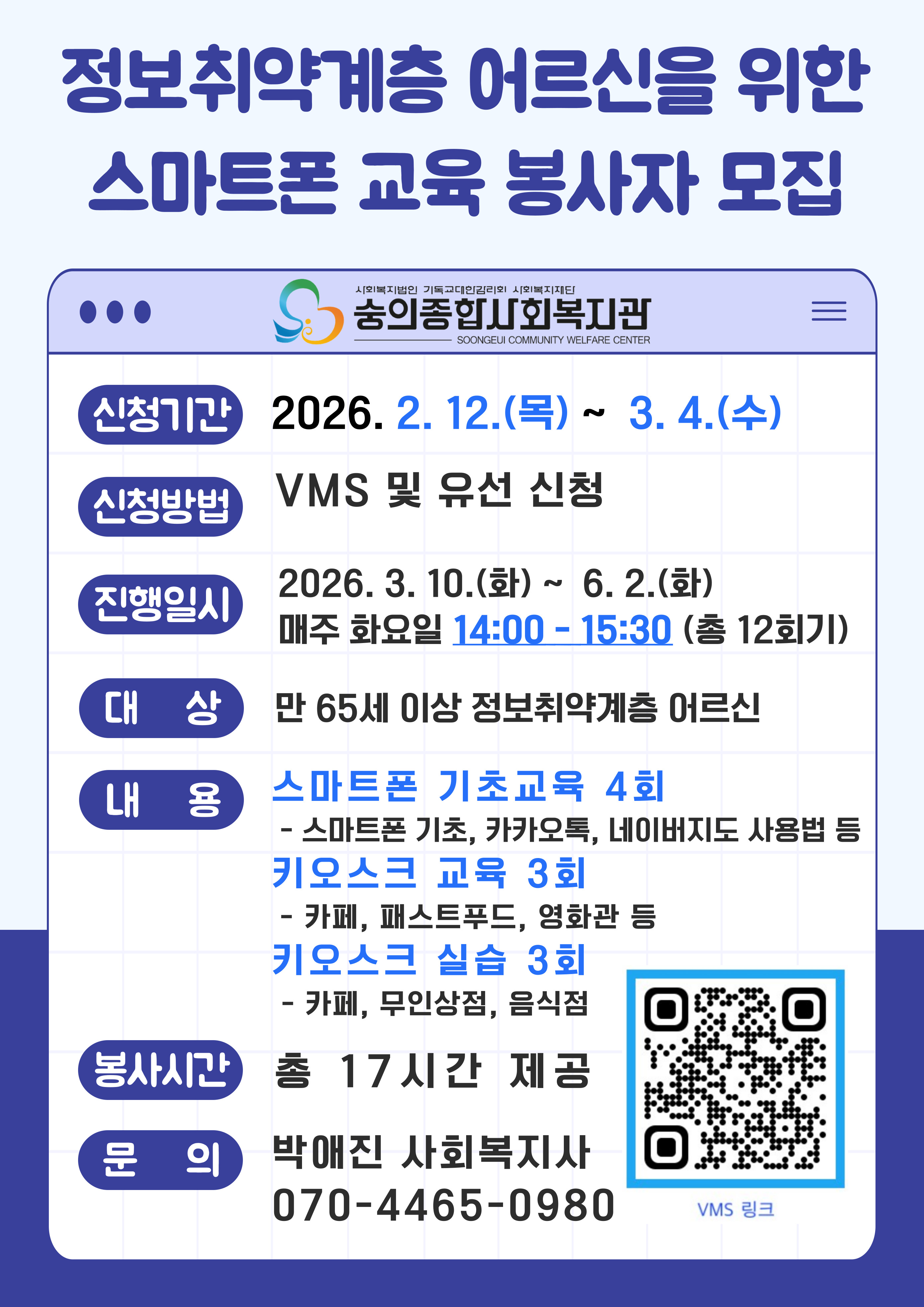 [숭의종합사회복지관] 스마트시니어 봉사자 모집 안내
