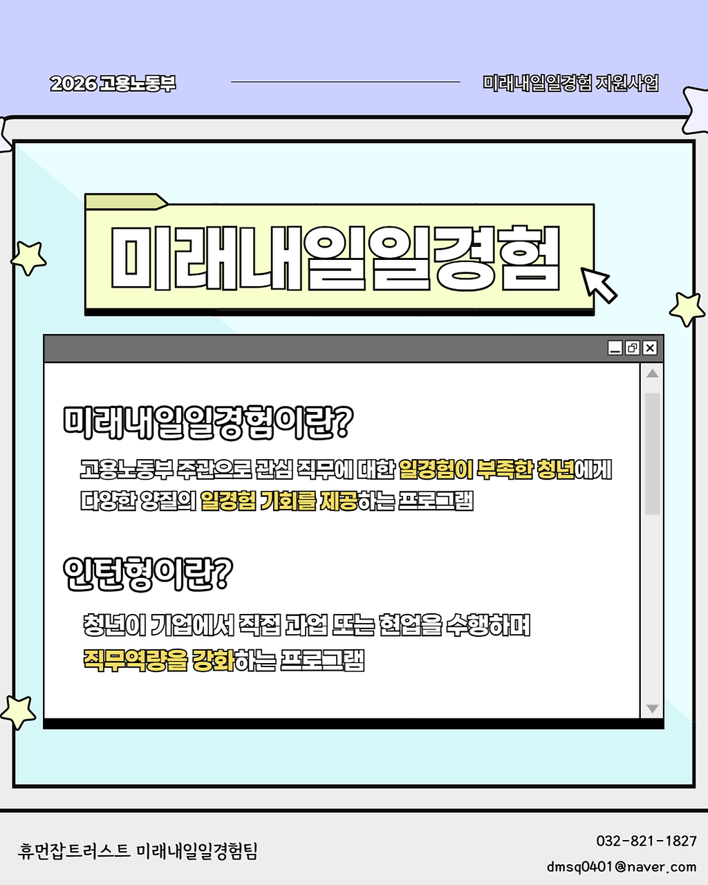 [휴먼잡트러스트] 미래내일일경험 인턴 참여자 모집 안내📢