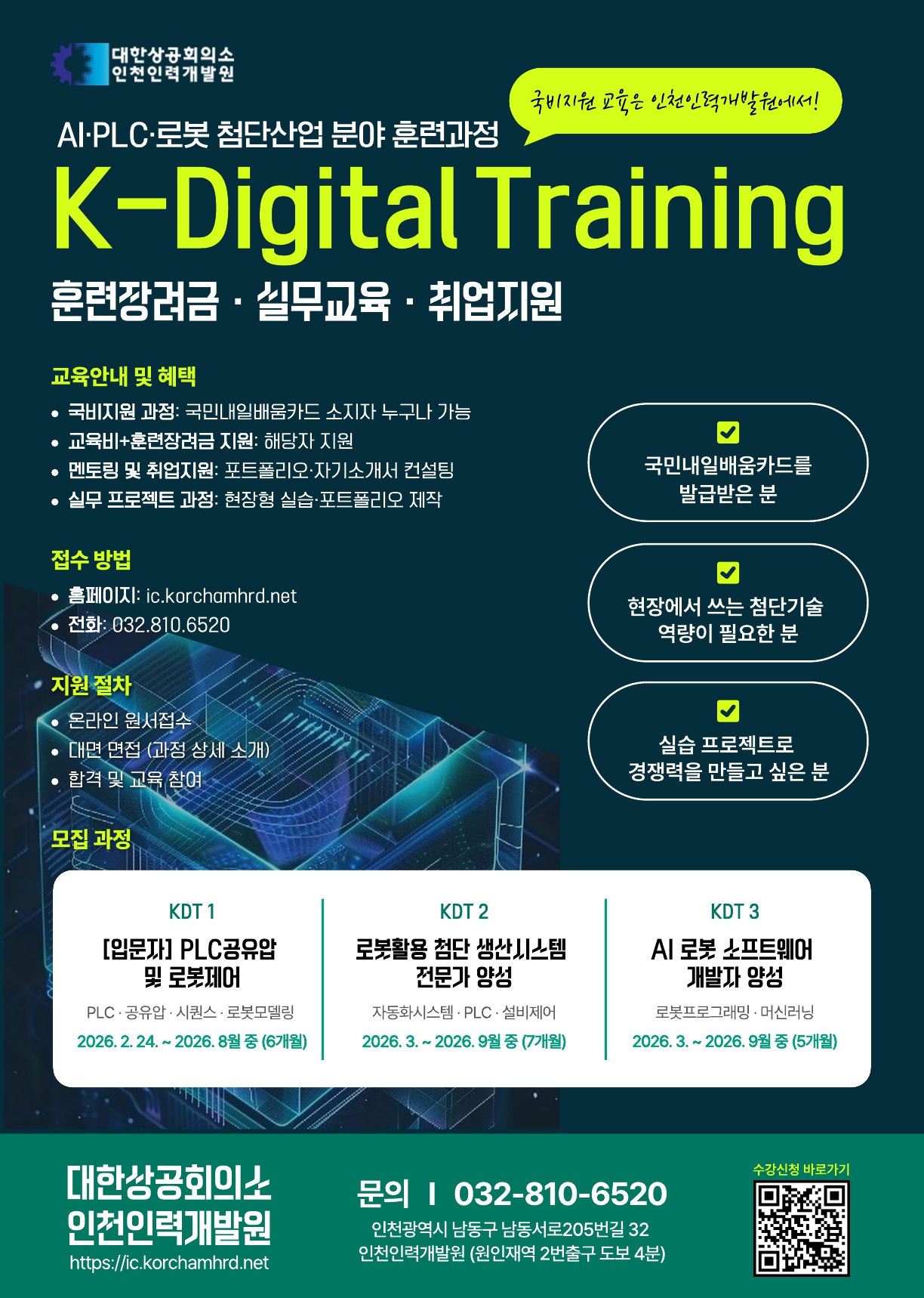 📝 접수방법: ic.korchamhrd.net → 취업연계 교육 → 원서접수