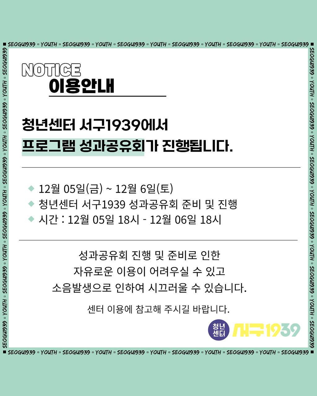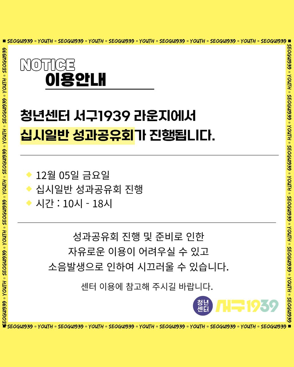 12.6(토) 10-18 청년센터 1939 : 프로그램 성과공유회