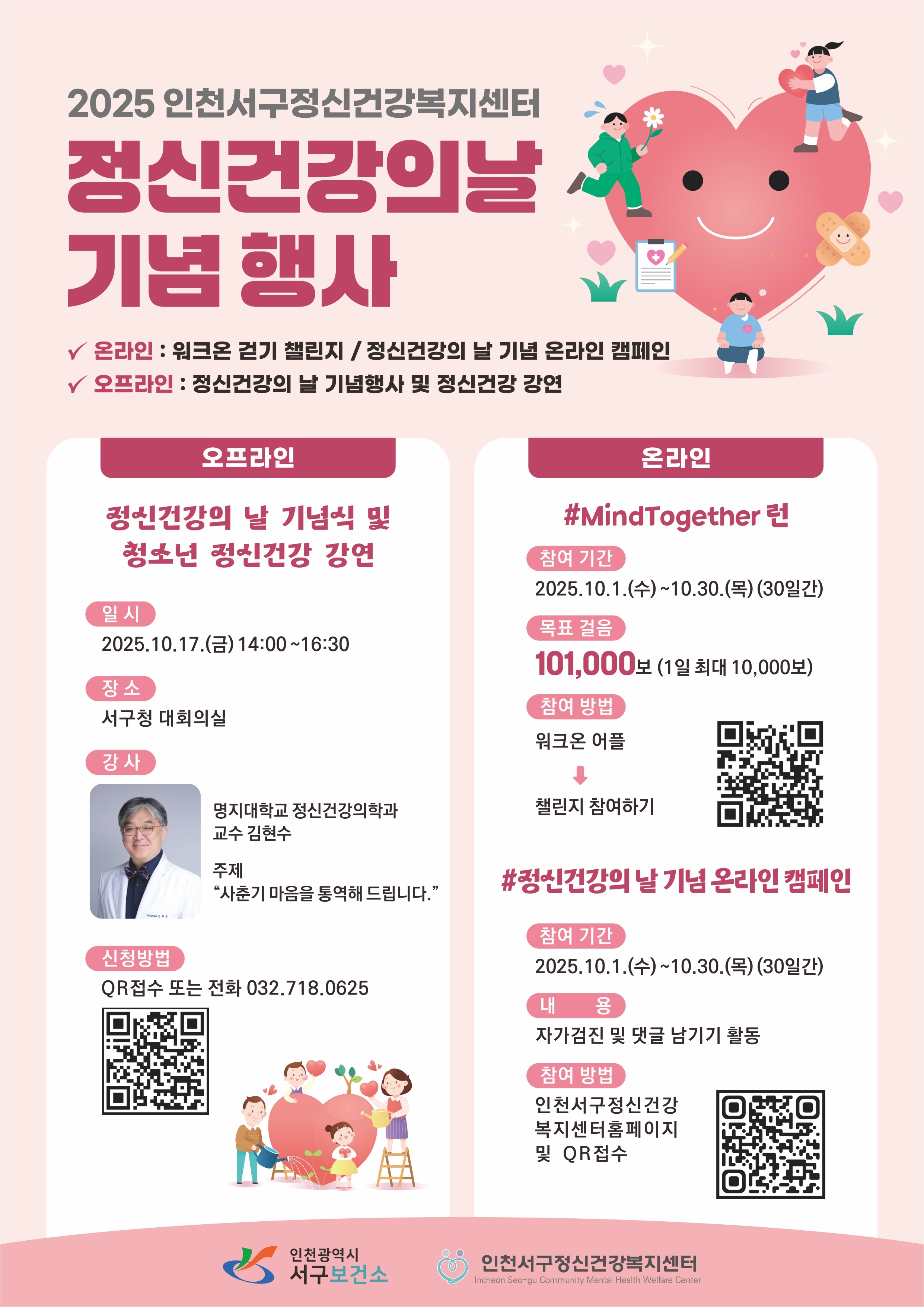 2025년 정신건강의 날 기념행사(청소년 정신건강특강) 및 이벤트