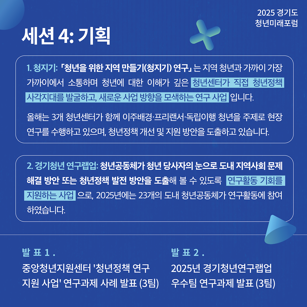 ✔️(세션4) 중앙청년지원센터 연구과제 발표 및 2025년 경기청년연구랩업 우수팀 연구과제 발표