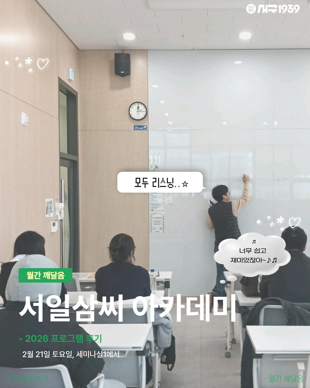 2월, 센터에서 어떤 깨달음이 있었는지 프로그램 후기 시작합니다.
