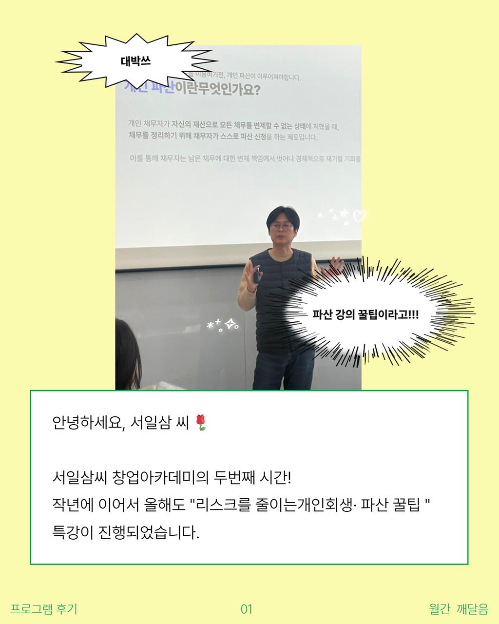작년에 이어서 올해도 "리스크를 줄이는 개인회생&파산 꿀팁" 특강이
