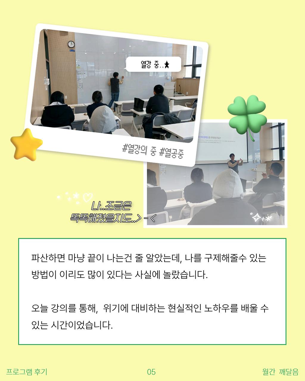 오늘 강의를 통해, 위기에 대비하는 현실적인 노하우를 배울 수 있는 시간이었습니다.