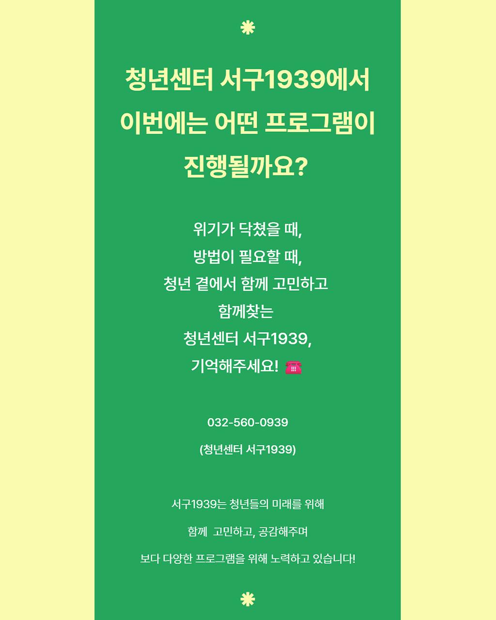 청년센터 서구1939에서 이번에는 어떤 프로그램이